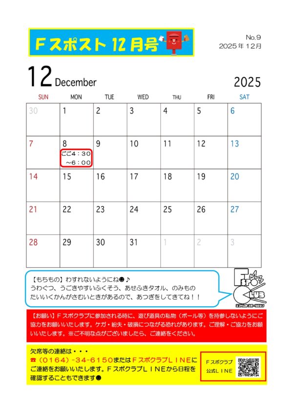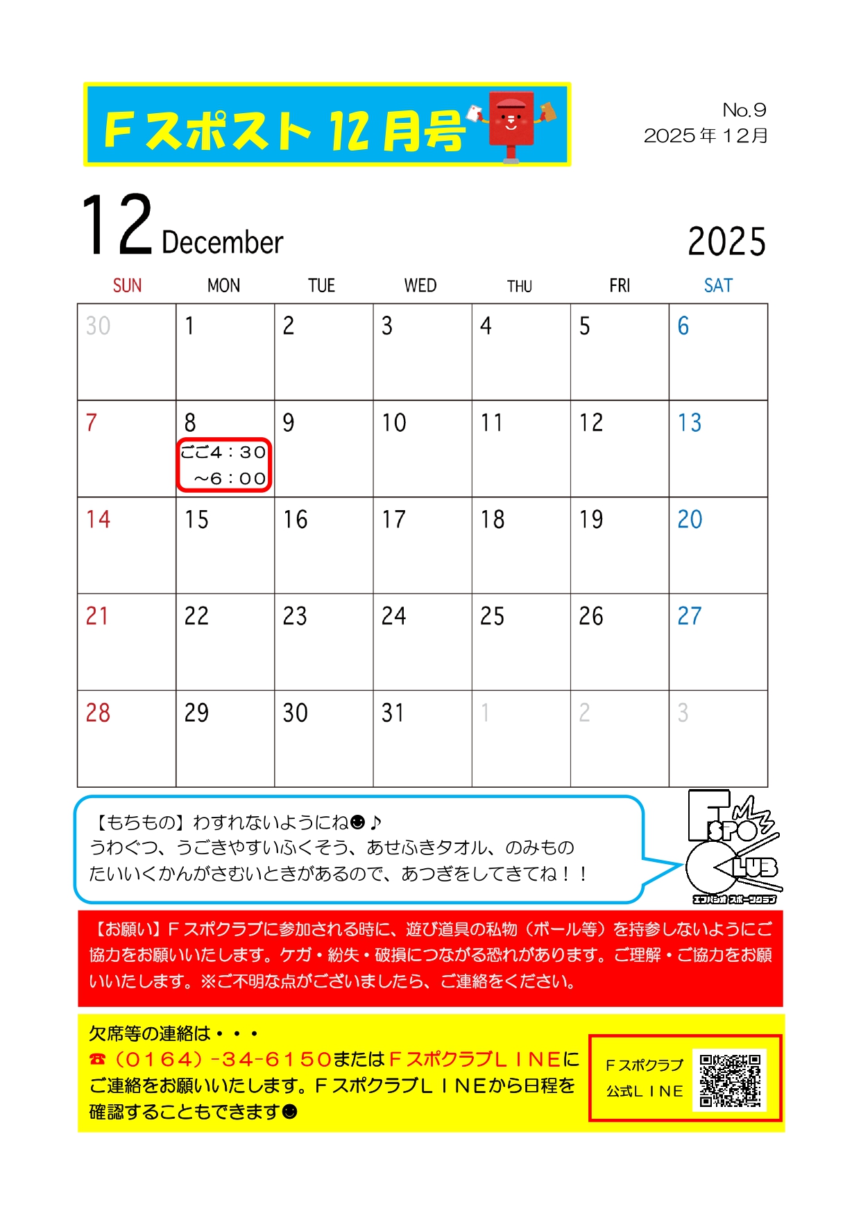 2025年度【Fスポクラブ☆ジュニアコース】予定表