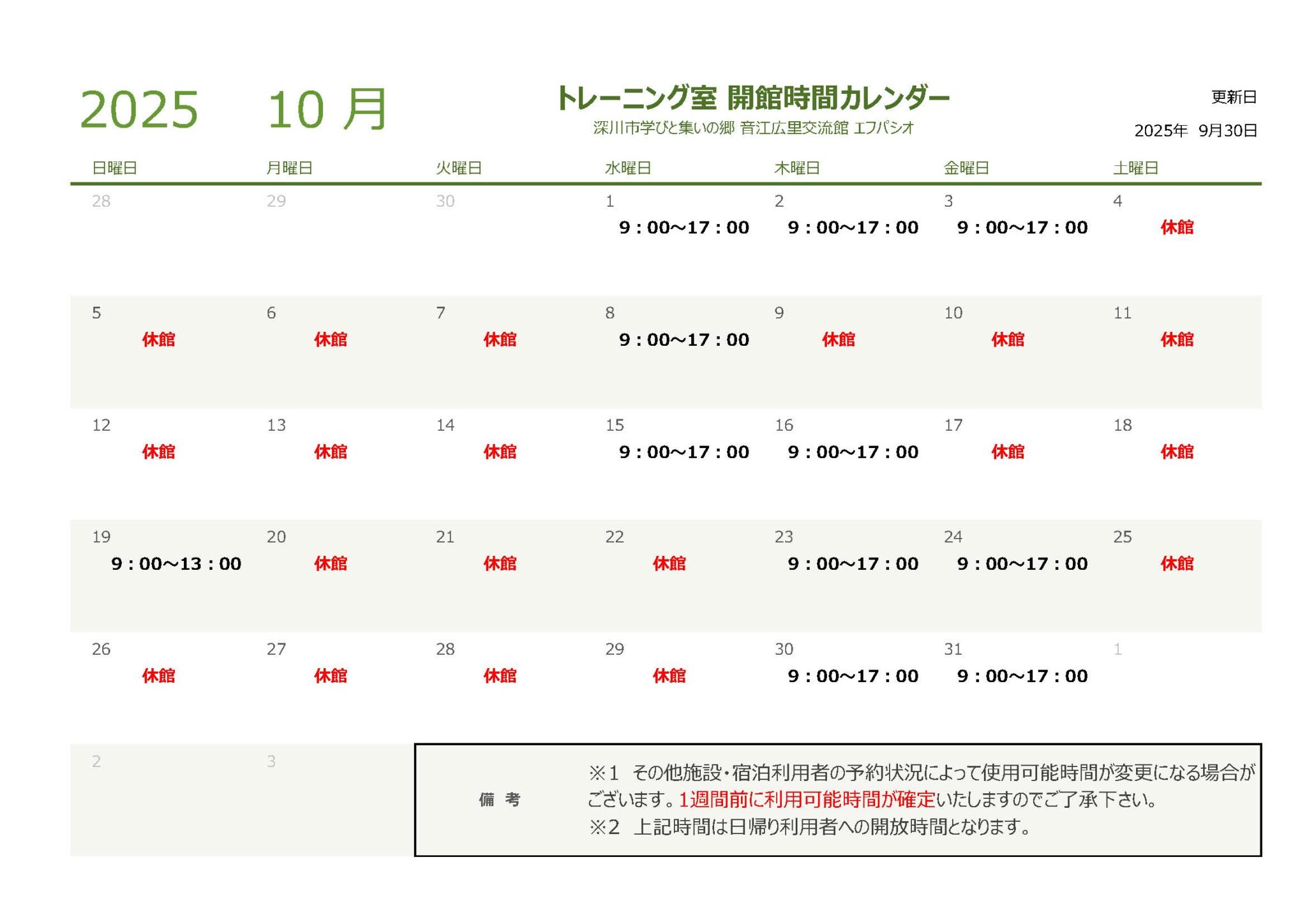 下記期間は休館日となりますのでご理解、ご協力の程よろしくお願い申し上げます。